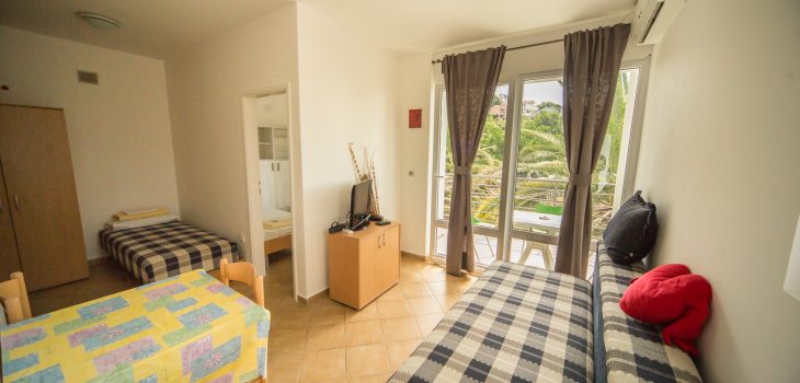 Na raspolaganju je 8 smještajnih jedinica, studio i jednosobnih apartmana. Apartmani su većinski četvorokrevetni, a svi su opremljeni kuhinjom, klima uređajem, terasom, TV-om, itd.